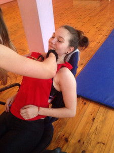 Поднимите руку те, кто могут с уверенностью сказать, что они точно справятся с маленьким ребенком, в любой ситуации, и его нервы не сдадут. Мне кажется таких людей будут единицы и скорее всего они не оставались один на один с этим прекрасным дьяволенком. Я же реалист и я прекрасно понимала, что я НЕ СПРАВЛЮСЬ. В моей голове была паника, по тому что я понятия не имела что мне делать с этими полными энергии детьми. Поэтому в первый день я постаралась по максимуму растянуть время (у меня это не вышло), по смотреть кто что может, и остановиться на самых банальных упражнениях. И если со старшей группой я прекрасно понимала, чего я хочу и к чему мне идти, то с малышами у меня была просто пустота в голове. И все те, кто говорят, что с маленькими детками работать проще, просто...придите и покажите, как надо, а то как-то до сих пор с ними труднее. Поэтому на тренировки к старшей группе я летела чуть ли не на крыльях!!